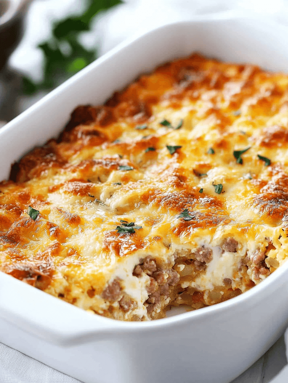 Cream Cheese Hashbrown Casserole with Sausage and Eggs